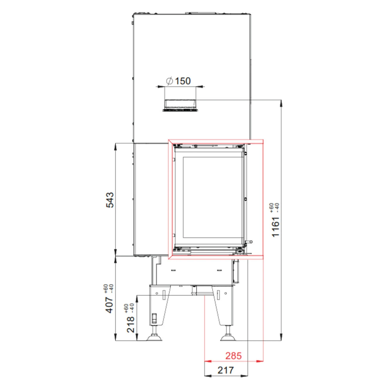 - Besonderheiten Kamin: Anschluss für Externe Luftzufuhr/ Frischluftzufuhr; Höhenverstellbare Füße;
