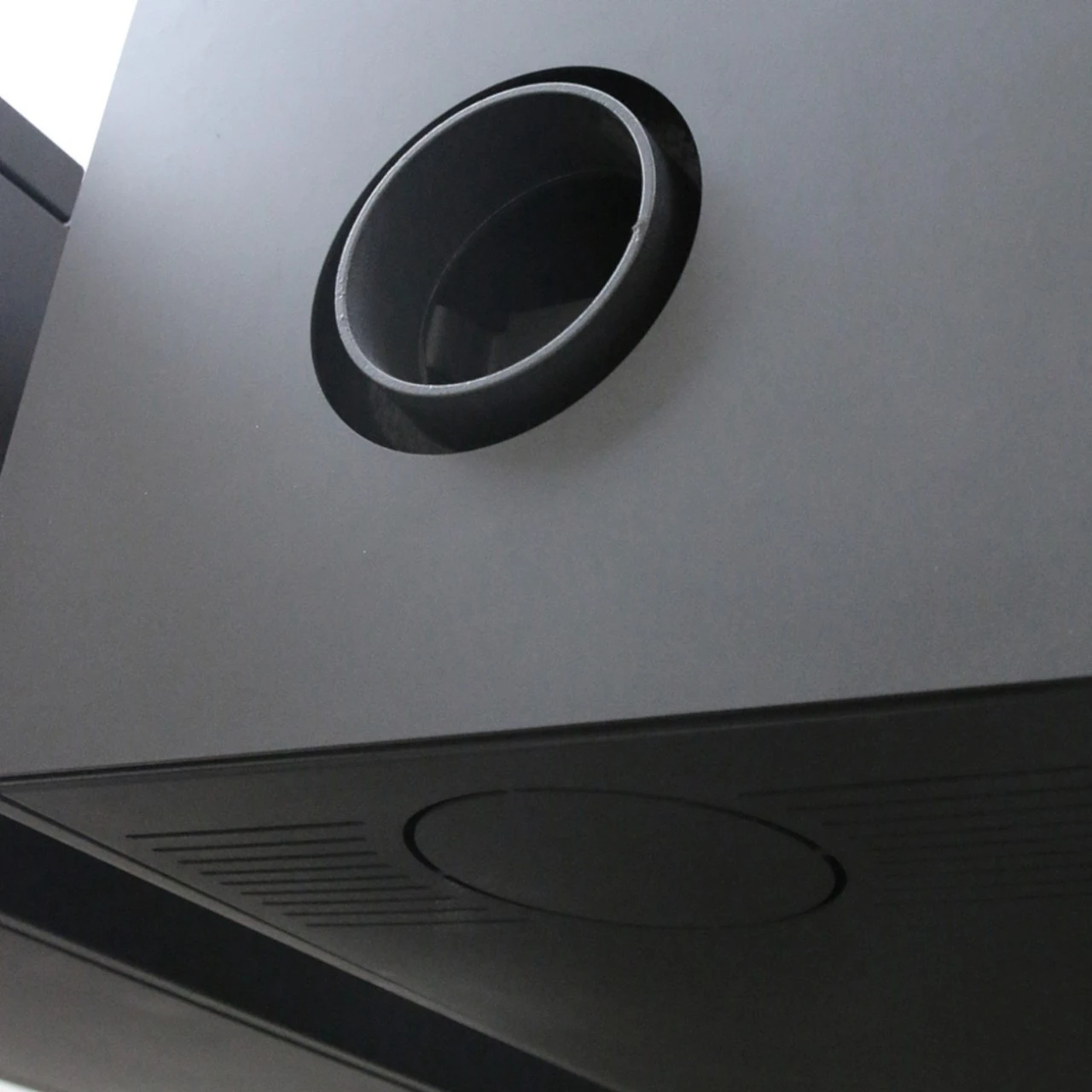 - Position Rauchrohranschluss: Die Standard Position ist oben. Wenn sie den Rauchrohranschluss hinten benötigen, erhalten Sie eine Abdeckung mitgeliefert, um den oberen Rauchrohrabgang zu schließen, Sie können diesen dann selber umbauen (die Anleitung finden Sie in der Bedienungsanleitung).