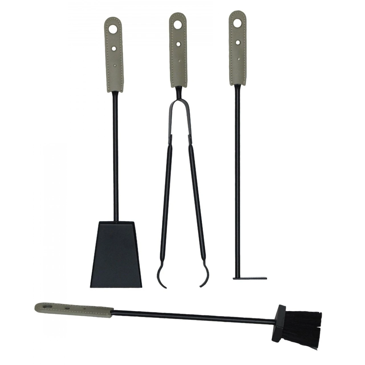 4-teiliges Kaminbesteck mit Ledergriff mod. „Mary“, Länge 65 cm