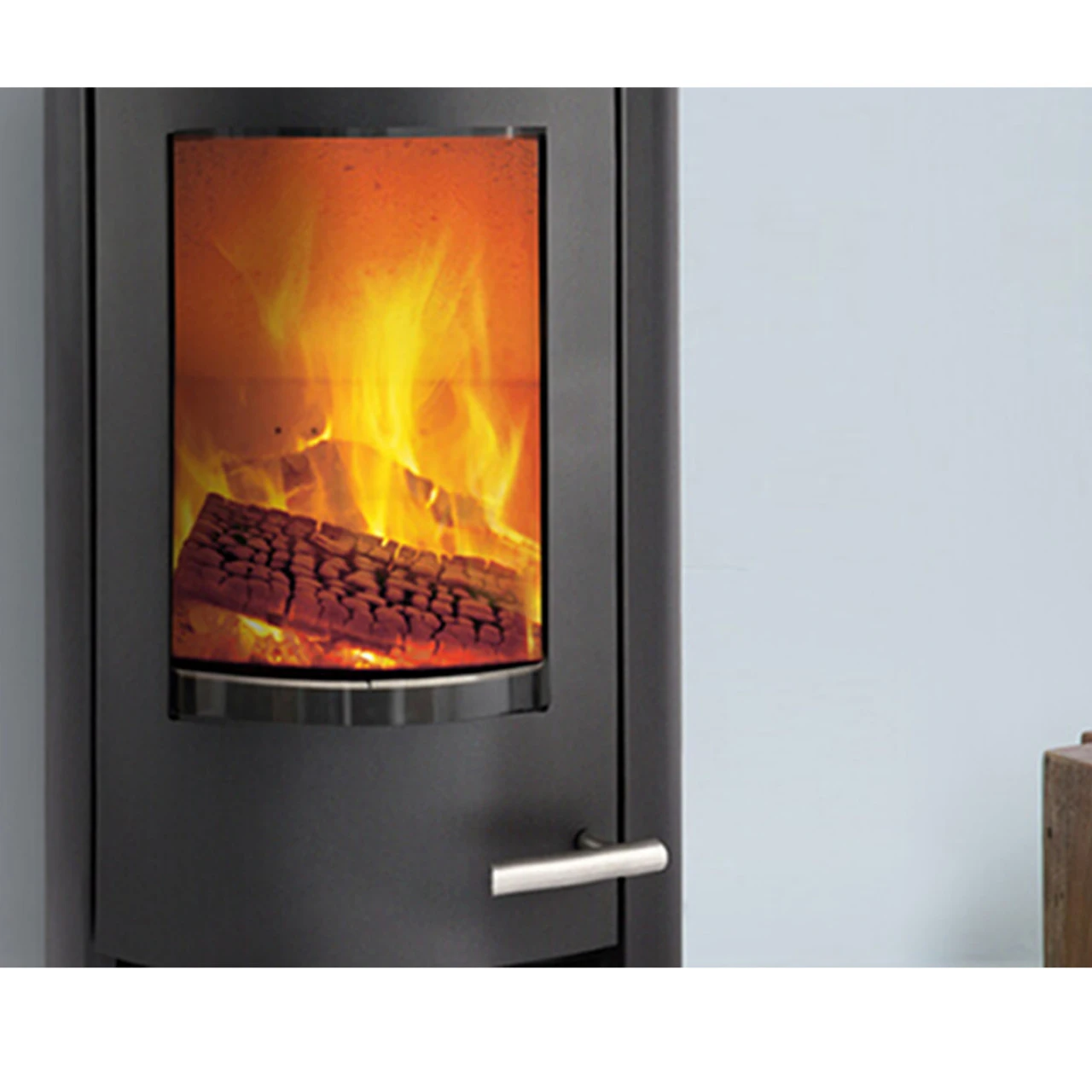 Größe und Leistung dieses Kaminofens machen ihn zur idealen Wahl für kleinere Räume oder ein Sommerhaus. Viele Besitzer legen gerne das Kaminholz in das Fach unter der Ofentür, aber wenn Sie Wert auf ein besonders elegantes, geschlossenes Design legen, kann auch eine Abdeckplatte am Kaminholzfach angebracht werden.