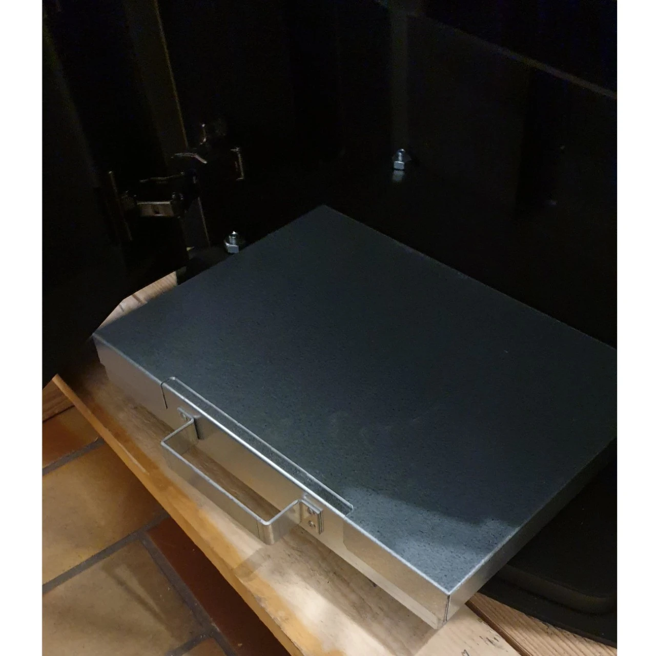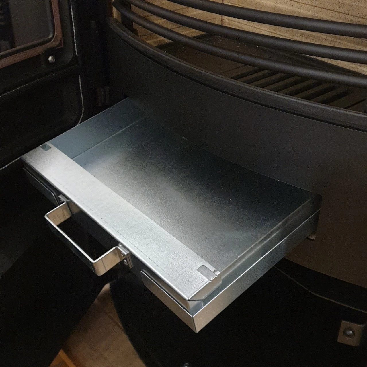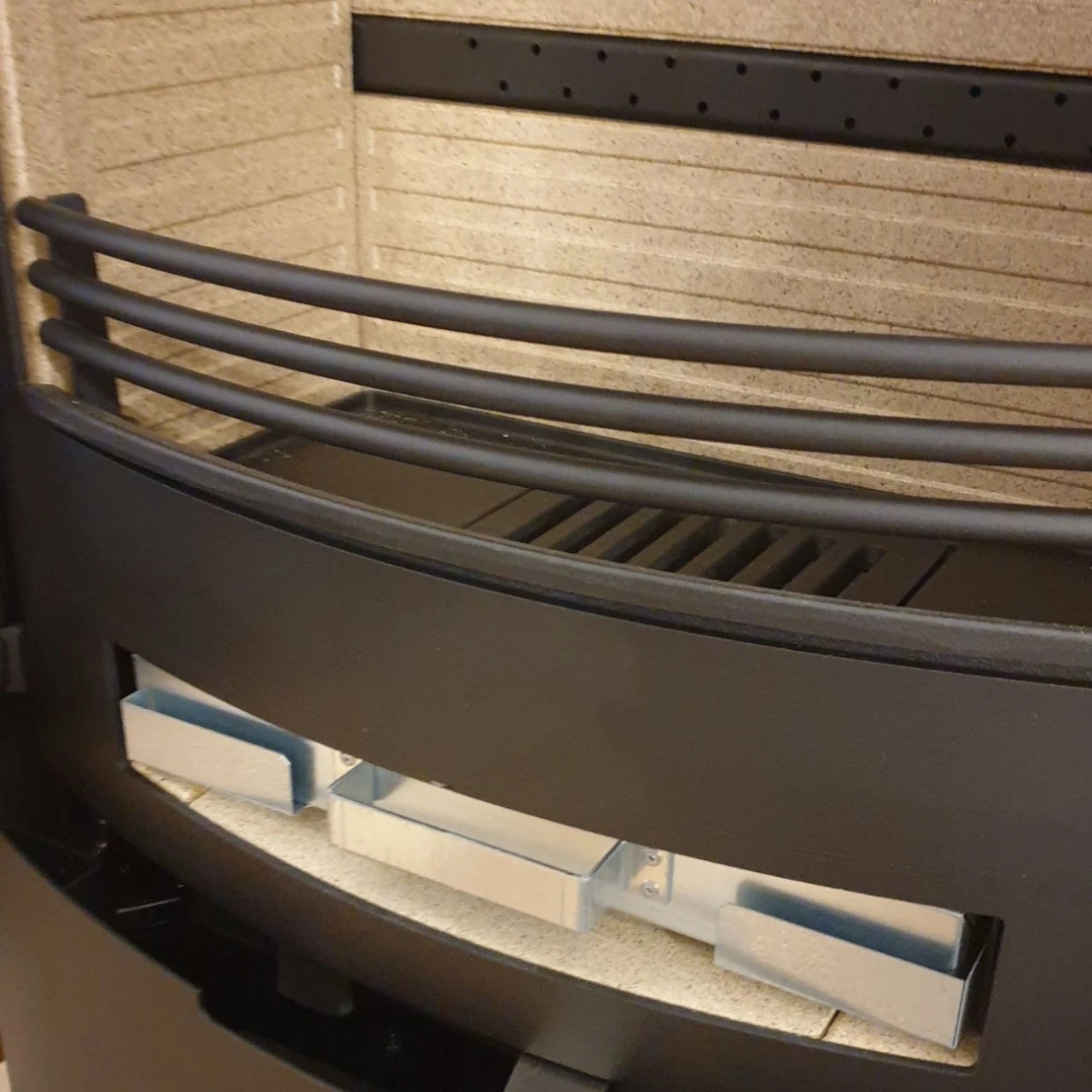 - Kaminbesteck zum einhängen in die Holzfachtür – öffnen Sie die Holzfachtür und schon können Sie leicht auf all das zugreifen, das Sie für die Bedienung Ihres Ofens benötigen: einen guten Besen, einen Feuerhaken und eine Schaufel. Sie vermeiden es, dass sich der Bereich um Ihren Kaminofen herum mit Zubehör füllt – jetzt stellt es einen integrierten Teil des Ofens dar.