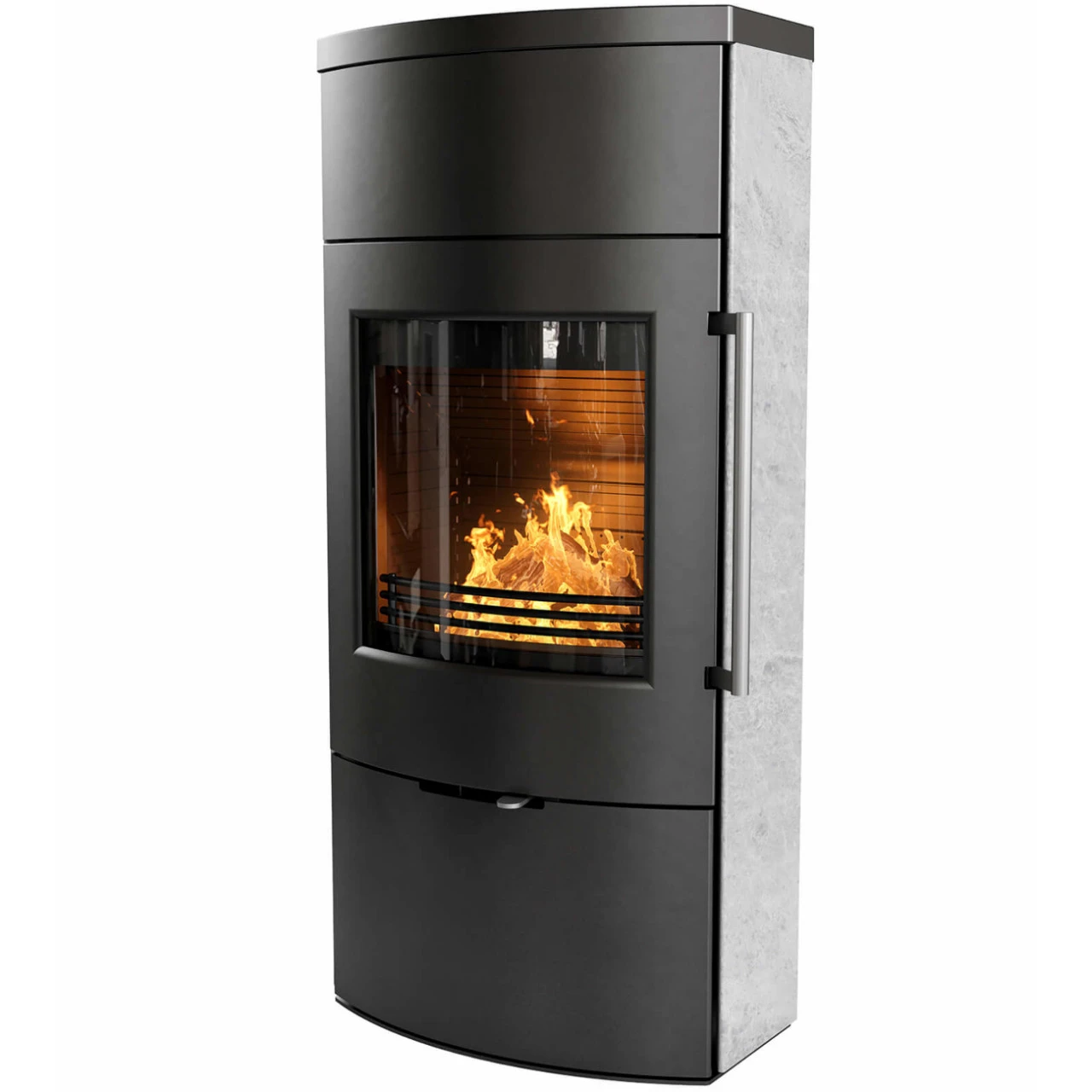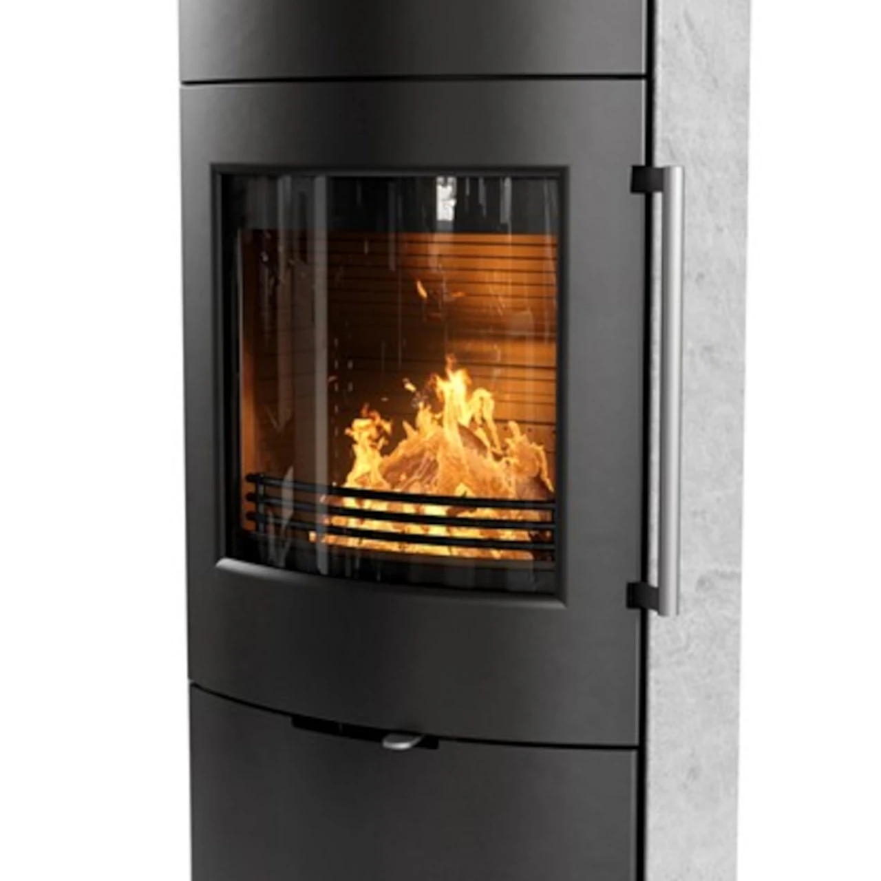 Als Zubehör sind eine schöne wärmespeichernde Specksteinfront sowie ein Kaminbesteck für die Holzfachtür erhältlich.