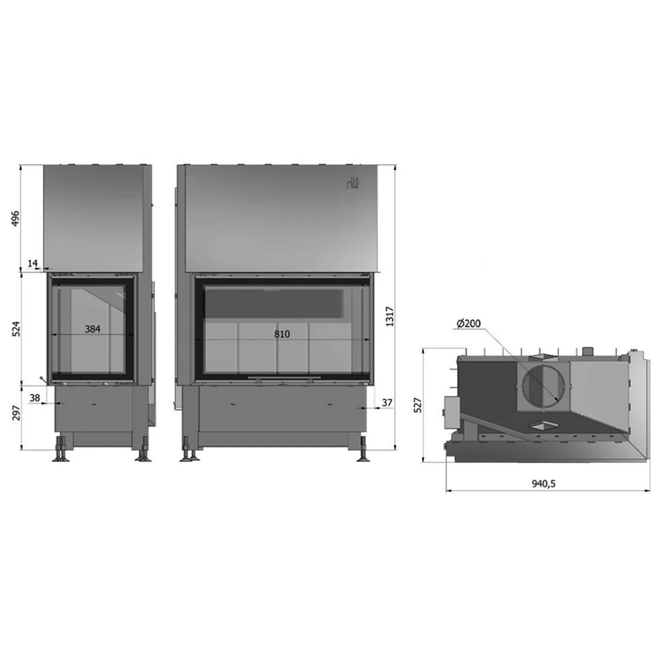 Modell: Hajduk Warmluft-Kamineinsatz Volcano 2BPTH 11kw Rechtsverglast Hebetür